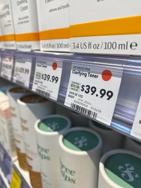 WFM RED DOT PRINTED IN CLEAR PLASTIC CHIPS RED DOT PLACED IN THE TOP RIGHT CORNER